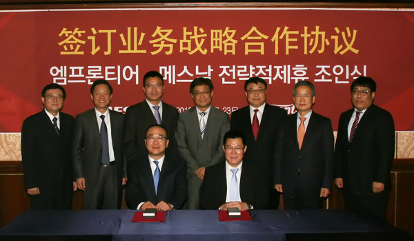 On 23rd Oct, MESNAC and Hankook’s wholly-owned subsidiary Emfrontier (EMF) signed “Letter of Intent” to build strategic partnership in Seoul. On behalf of each Party, MESNAC EVP Zheng Jiangjia and EMF CEO Ahn Jae-Hwan signed the contract. They will have in-depth cooperation in IT solution, plant automation and logistics automation as well as global market development together.
