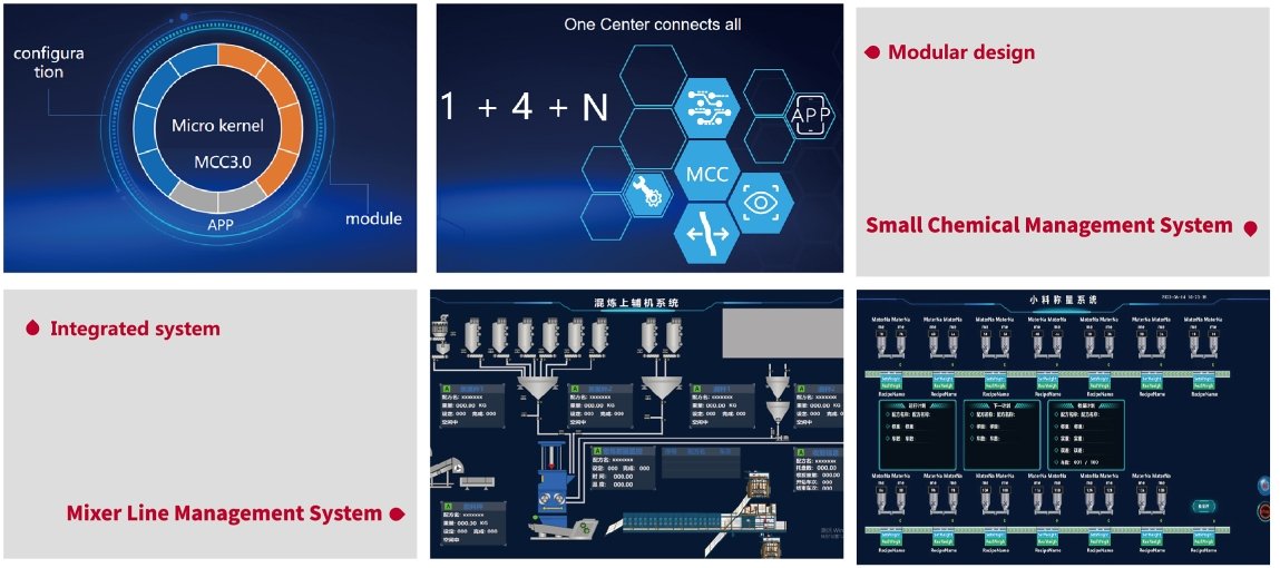MCC can manage the formula of the whole production line , and provide diversified production reports and digital monitoring of production equipment. Throuch the cooperation with several MES manufacturers in the actual proiect. a set of standard equipment data interface of interna mixing workshop is established to ensure the smooth data interaction between svstems and shorten the delivery cycle.