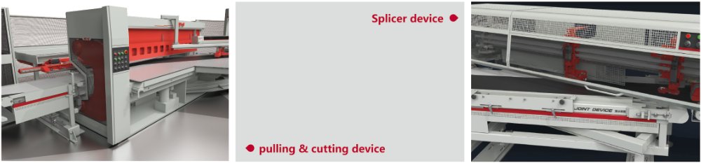 ● Let-off device with rotating double stations or side by side double stations can be selected, automatic splicer of let-off materials